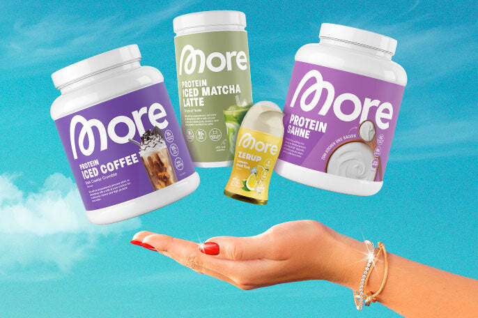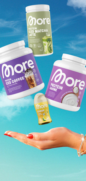 Ganz More-like haben wir uns viel Zeit genommen und unser More Protein Milkshake Style auch mit More Geschmack kreiert: Unsere Geschmackssorten sind das Ergebnis eines aufwendigen Entwicklungsprozesses – doch es hat sich gelohnt. Nach unzähligen Tests und Optimierungen von Aromen und Süßstoffen haben wir es geschafft, das Beste für dich rauszuholen: das More Protein Milkshake Style Pulver. Also freu dich auf wertvolle Proteine, unwiderstehlichen, cremigen Milchshake-Geschmack und unglaublich leckere Sorten für jede Menge Abwechslung – fruchtig, schokoladig oder ausgefallen. Du wirst dich fragen, wie wir diese himmlische Cremigkeit erreicht haben. Ganz einfach: Durch den Casein-Anteil im Eiweißpulver, denn der sorgt für eine herrlich cremige Konsistenz, da Casein aufgrund seiner Proteinstruktur die Flüssigkeit perfekt bindet. Und die leckere Süße? Die erreichen wir ohne zugesetzten Zucker nur mit dem von Natur aus enthalten Zucker und unbedenklichen Süßungsmitteln.²